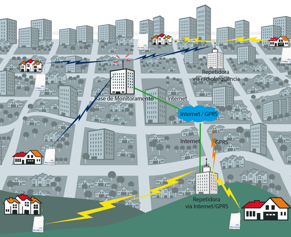 • As repetidoras podem transmitir em radiofreqüência, GPRS e Internet, aumentando a segurança através de um maior número de vias de comunicação, além de possibilitar